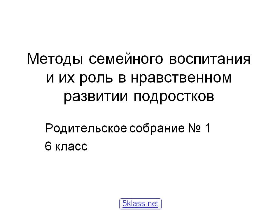 Методы семейного воспитания и их роль в нравственном развитии подростков. Родительское собрание 1 6 класс. Слайд 1 из презентации «Семейное воспитание подростков».